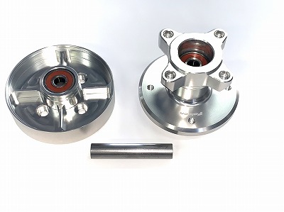 当社製12インチアルミホイールをGROMに取り付けるハブです、無加工簡単ボルトオン装着です。