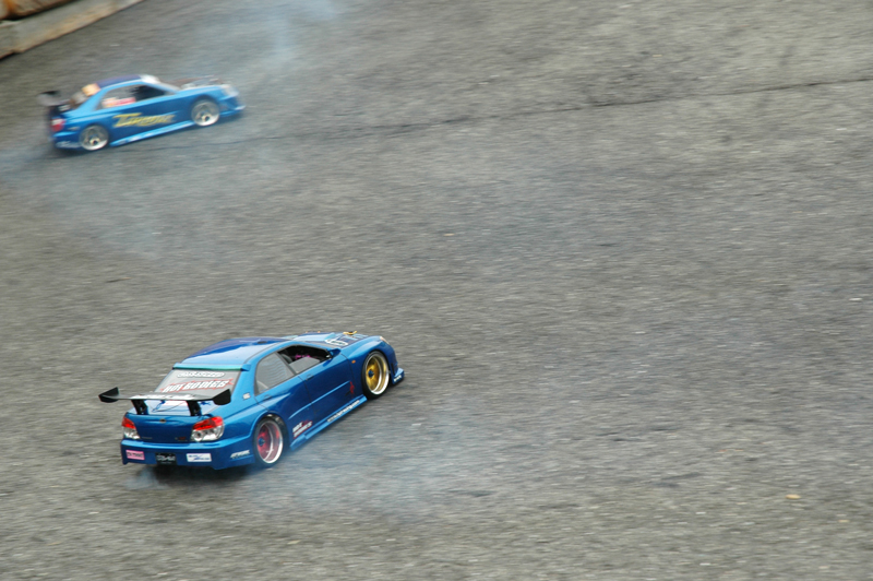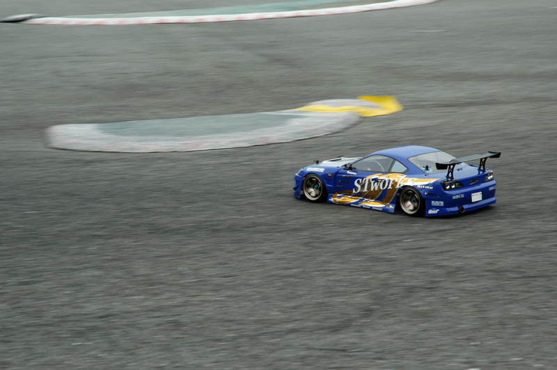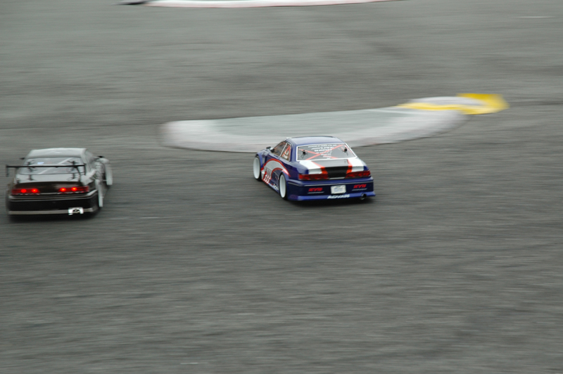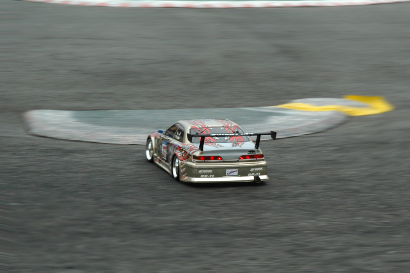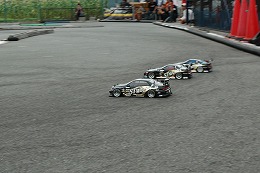 予選結果によりA, Bクラスに分けて予選と同様に5分間のルーレットで決勝が行われました。チャレンジBクラスは各選手拮抗したレベルで審査員を悩ませましたが、安定した走りで高野靖之選手が優勝しました。チャレンジAクラスで気を吐いたのは、たかあき選手, おきっちゃん選手でした。2人で綺麗に周回している様はまさにツインドリという感じで、甲乙付けがたい走りで楽しませてくれました。予選トップ通過の中村貴史選手は集中力が切れたか、マシントラブルか精彩を欠く走りで下位に沈んでしまいました。